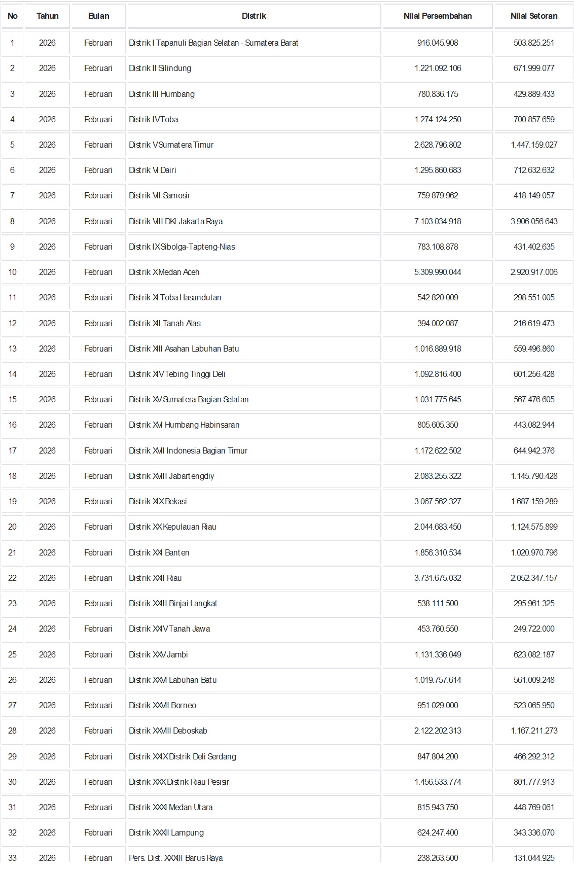 Penerimaan Pelean Distrik 2026By admin / March 21, 2026 4 thoughts on “Penerimaan Pelean Distrik 2026” Binsar Sitompul March 23, 2026 at 9:42 am Barus belum layak jadi Distrik. Reply admin March 26, 2026 at 2:43 am Terima kasih masukannya. Reply Pdt Darwin Sihombing March 24, 2026 at 4:32 am Kenapa jumlah persembahan dan yang disetorkan bebeda di Pebruari 2026? Reply admin March 26, 2026 at 2:42 am Perbedaannya dengan data dimana amang? Seperti tertera dilaporan ini, data ini adalah data Cash Basis artinya berdasarkan uang yang masuk, bukan berdasarkan tanggal pelean. Reply Leave a Comment Cancel ReplyYour email address will not be published. Required fields are marked *Type here.. Name* Email* Website Save my name, email, and website in this browser for the next time I comment.